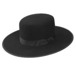 The brim is flat at 3 1/2″ with a bound edge.  It comes with a absorbent sweatband, satin lining and grosgrain ribbon. Made in U.S.A.