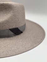 The Magness is a modern and cool table-top stiff brim fedora in our LiteStraw® finish. The LiteStraw® finish makes the straw durable and flexible, while also being water repellent. It is crafted using a colorblocking technique with the Japanese grosgrain around the crown to give it a nice pop of color. The Magness is finished with a signature dipped flooring nail behind the band making it a fashionable stunner.The Magness is hand-crafted in the USA from globally sourced materials.