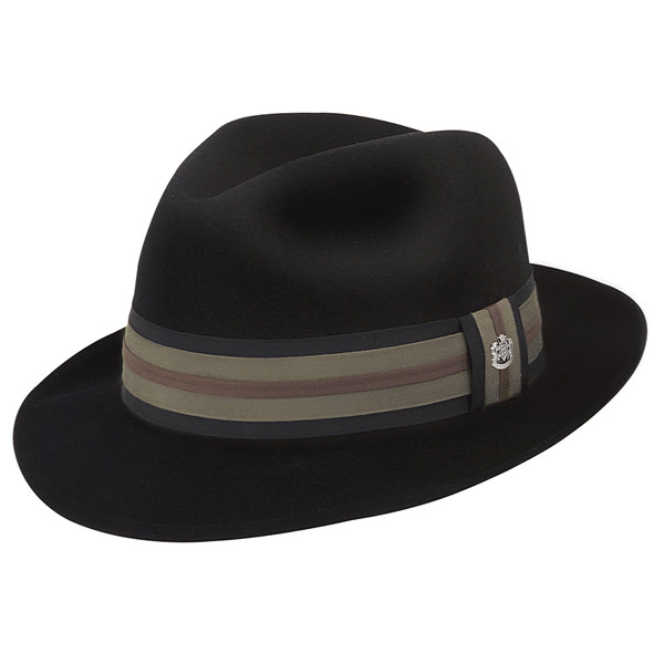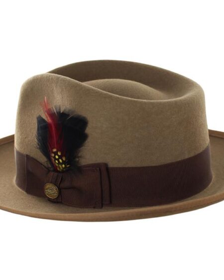 The Biltmore Uptown Fedora is a unique fedora with a centerdent crown and 2 inch brim which can be snapped down in front. Made from water resistant wool felt, this hat is as durable as it is soft. The hat band is a unique layered stripe band with textured stitching across the center, in complementary colors that give the hat a fashionable look. Lined with satin and finished with a leather sweatband. Made in the USA.
