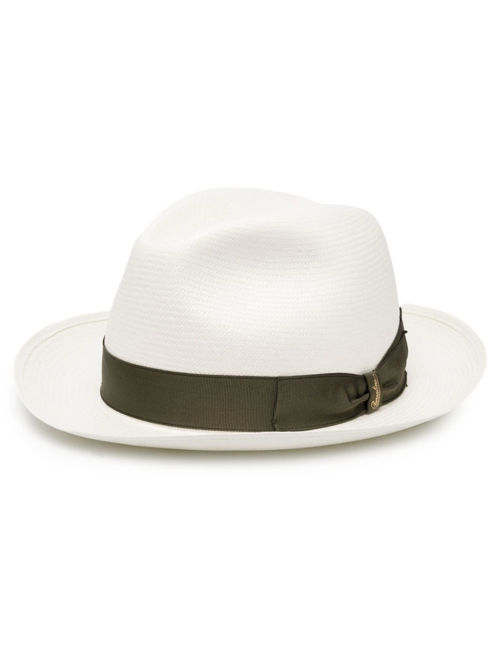 Federico Panama straw hat from BORSALINO featuring Natural/Green , straw, narrow brim and logo print to the side.