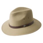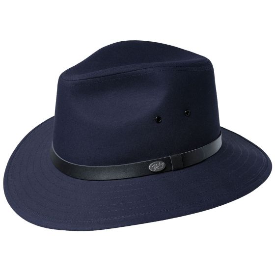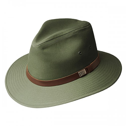 The Dalton is a popular style because of its water resistant poplin fabric. Great for city or country, the Dalton has cotton taped seams, a downturned safari brim, a vegan leather hatband, and a comfort sweatband.
