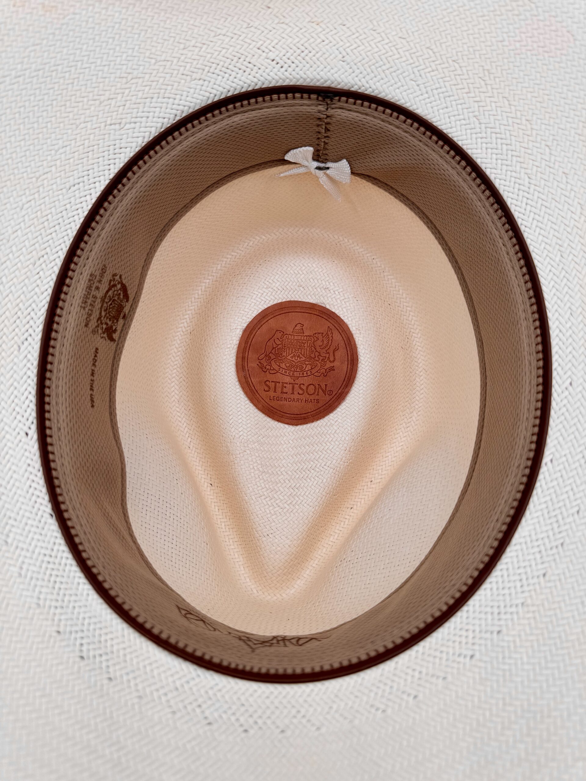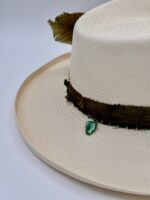 Handmade in the U.S.A. from high-quality shantung, the Free Thinker is a statement-making straw hat with a 3 3/4” brim and a 4 1/2” pinch front crown. Its bohemian style is enhanced by a beaded silk hat band and removable feather detail. An absorbent DRI-LEX® sweatband ensures an all-day, comfortable fit.