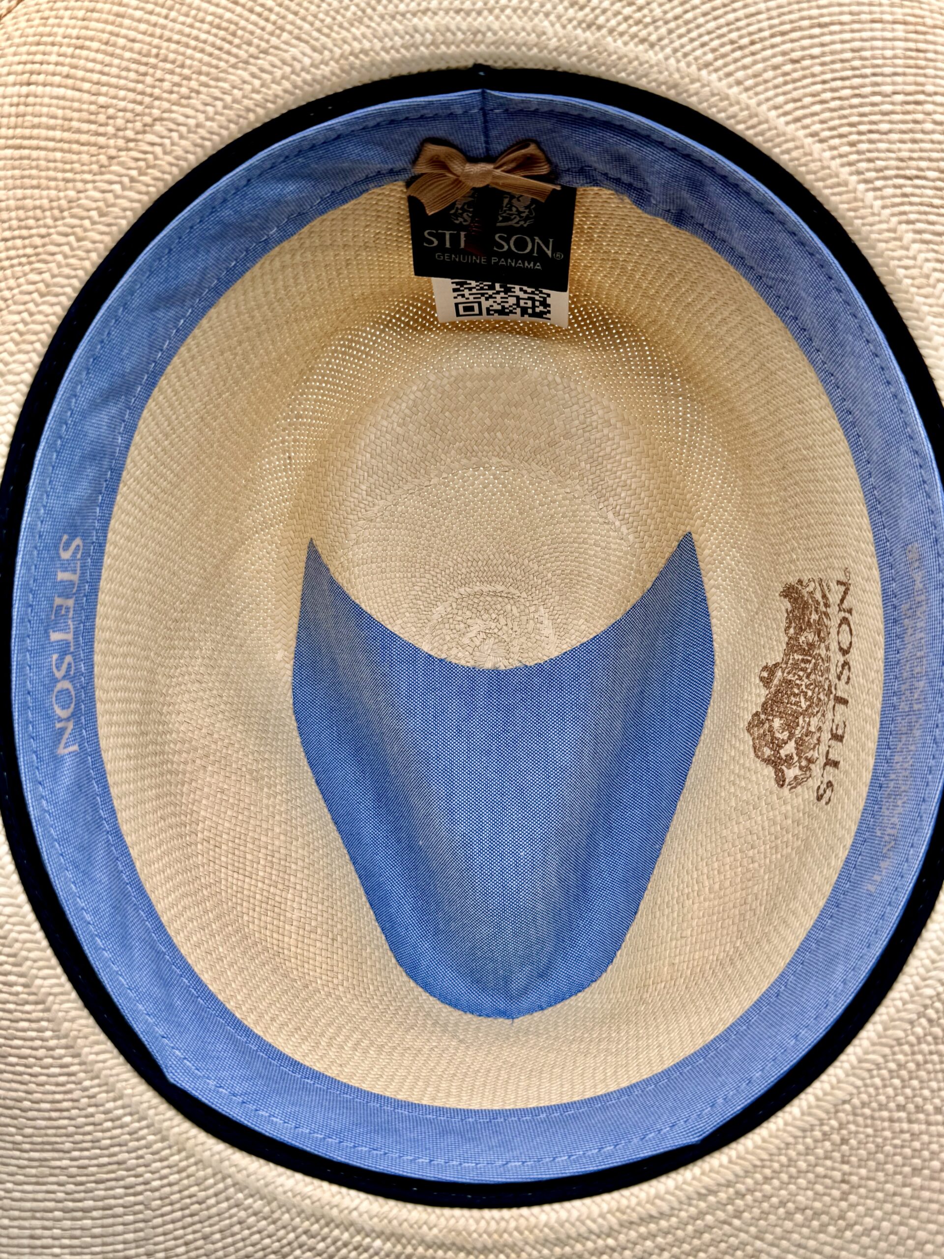 Fusion of comfort and individuality.A trimming band in black adorns the classic woven Panama hat from Stetson.The fine and silky soft toquilla straw combines factor 40 sun protection and airy lightness in an original style Bogart works hat.With fabric lining.Fans and fine connoisseurs of Panamas,this authentic specimen will draw your attention and seduce you rapidly.