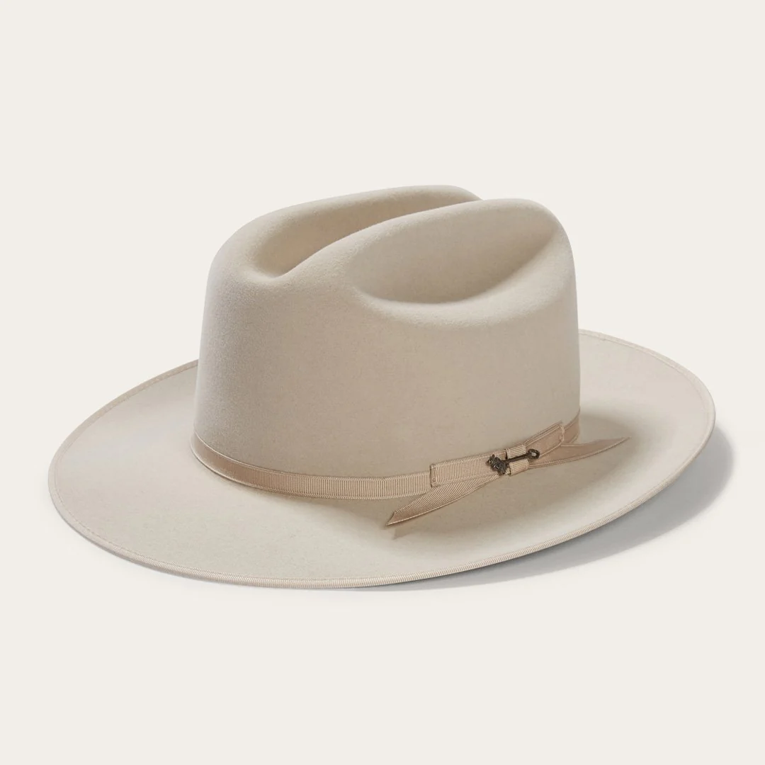 A true legend, the Open Road Royal Deluxe Hat offers a timeless blend of city style and Western tradition in a more flexible finish than our standard Open Road. Made from handsome high-quality 6X fur felt for unbeatable softness and resilience, it features a grosgrain hat band and Stetson-branded hat pin for a subtle dose of texture. The hand-sewn brown leather sweatband and satin liner provide a time-tested fit and premium comfort.