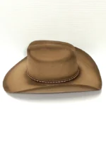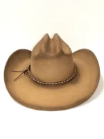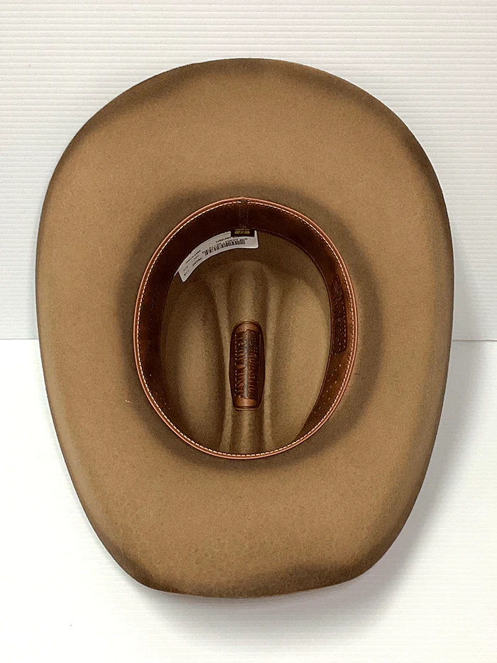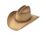 The 4X “Dirt Road” cowboy hat from Resistol Jason Aldean Collection comes in Resistol stone color that is mildly sweat distressed at the factory for a relaxed, well-worn look. With a braided leather hatband, and a modified Montana crease, this is one comfortable hat that shouts “chill out” from the mountain tops.