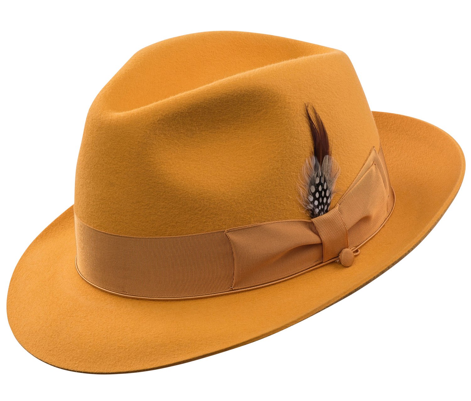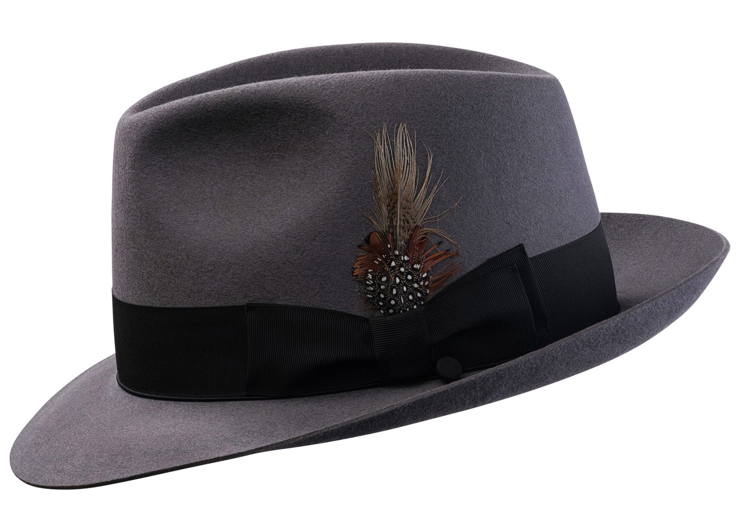 Crafted with a light fur-felt finish, the Sterling Hat was designed as a classic gentleman’s fedora with a raw edge and grosgrain band. Hat-wearing is an art that modern men can eloquently master with the fashionable Sterling Hat by Selentino Hat. This best-selling, stylish hat features a high-quality, light fur-felt finish that’s easy to wear. Offered in fourteen color options, the Selentino Hat Sterling Hat is the perfect fedora style for classic menswear.