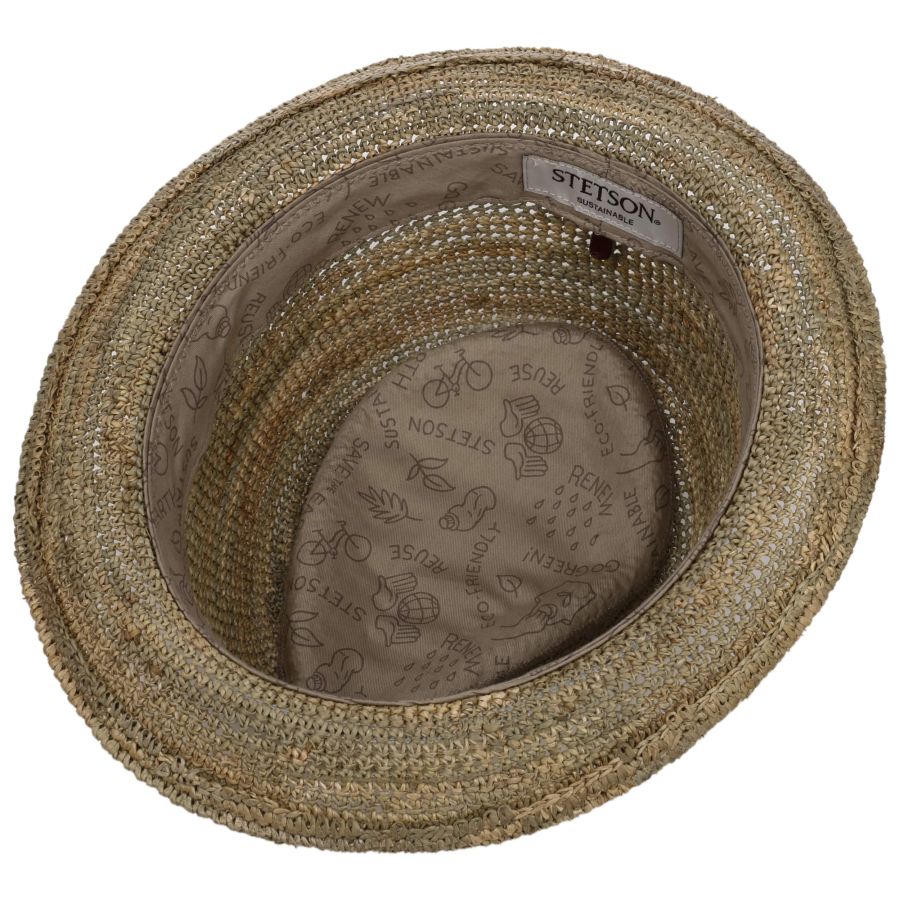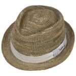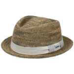 The beautiful natural look of 100% sea grass straw gives the stylish Diamond hat from Stetson an appealing light-hearted look. Subtle variations in the colour of the surface create a stimulating dynamic, which is emphasised by the sweeping upward curve of the brim and the characterful crown. The design is rounded off by a wide decorative band adorned with colour-contrasting stitching. From Stetson´s sustainable Capsule Collection.