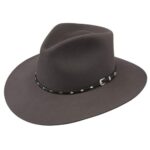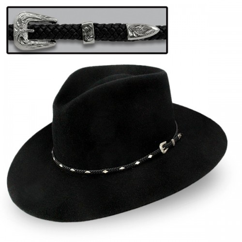 Strut out in style with the Diamond Jim Stetson Fur Felt cowboy hat, a must have western from Stetson! Complete with a diamond concho band to accent the extremely soft, dark rabbit fur pelt hat. The teardrop pinch front crown and 3.25″ brim make this hat unforgettable. The Diamond Jim 5X Outdoor Hat is constructed of 5X quality felt fur and features a pinch front crown, interior comfort sweatband and woven leather hat band with diamond shaped studs and 3-piece buckle accent. 5X Quality Fur Felt. Made in USA.