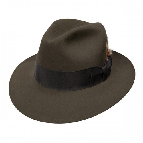 A nod to the 1940s jazz bars of New York City. An icon in its own right, the Temple is a statement of distinctive style. Made from quality felt, it features a center pinch front crown and a wide grosgrain ribbon hat band nicely offset by a bold feather accent. On the interior, a roan leather sweatband and satin lining stamped with the Stetson mark finishes things off.