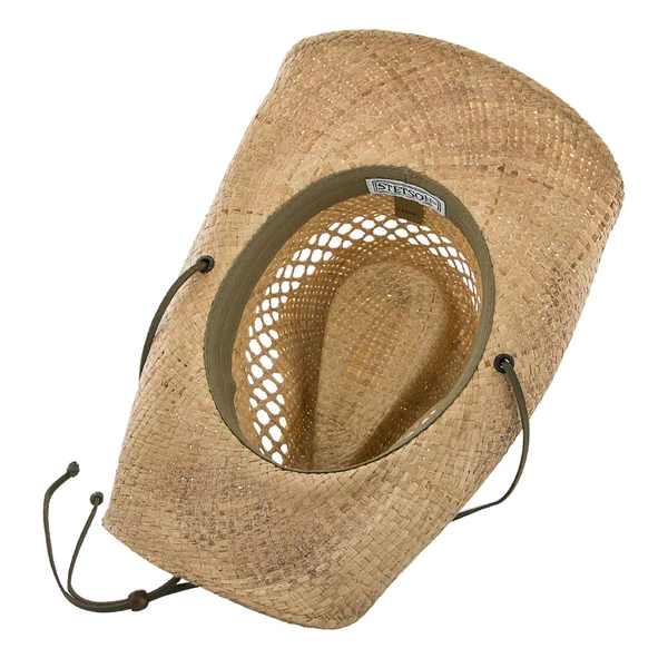 Ride’em cowboy. But for real, if you’re looking for that rugged Western look, able to rope cattle out on the range, the Stoney Creek Stetson Raffia Straw Cowboy hat is for you. This stylish straw Stetson cowboy hat has everything you want for that country feel. The stained raffia straw has a worn texture, making it look like it’s already seen days of riding. A teardrop crown and front pinch are complemented by the wide airy gaps purposefully designed into the hat. A shapeable wire brim allows alternative looks. The thin leather hat band includes buckle shaped designs and beads, which leads to a handsome chin strap. A cotton sweatband is very comfortable, completing the thoughtful craftsmanship to the Stetson Stoney Creek hat.