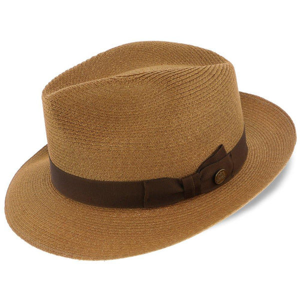 This is the new mainstay for a fresh era of summer fedoras. Stetson brings out their finest efforts with this new Stetson Tate hemp fedora hat. The hemp braid is tightly woven, giving the hat excellent almost fabric-like structure. It’s an excellent comparison to its warmer wool counterpart. This is the summer hat you can wear in the city, without having to resort to a tropical island straw type hat. With a teardrop crown and front pinch, the fedora styling is timeless. A medium sized grosgrain hatband doesn’t overpower the look, while inside sports a stretchy sweatband, providing the utmost in luxurious wearability.