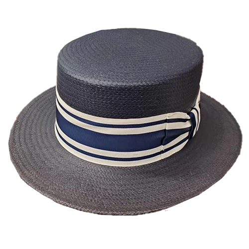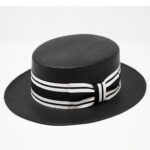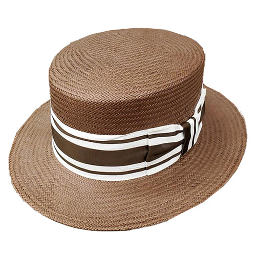 The Shantung Boater by Capas is a stylish and functional boater hat made from shantung/toyo weave. This hat is perfect for any number of occasions. Whether in church or dressing up for a wedding, heading to the Derby or out for another afternoon affair, this headpiece will certainly make heads turn. It features a flat crown 3 1/2″ , 2 1/4″ inch flat brim, and a club style 2″ ribbon, striped grograin hat band, and comfort sweatband. Made in the USA for us by Capas Headwear.