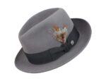 From Stetson’s Royal line comes the Saxon Royal Fur Felt Fedora Hat – the best selling hat from the premiere American hat company. Made of premium soft finish fur felt, the Saxon features a classic pinch crown and traditional two-inch underwelt snap brim. Wear the brim snapped down for a timeless Old Hollywood look or keep it snapped up for a more modern twist.