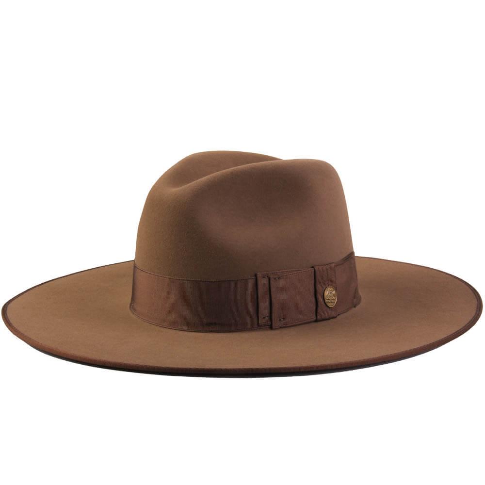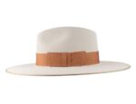 This stylish fedora is constructed of firm Royal Deluxe quality fur felt and features a striking, modern profile. The classic center dent crown is paired with a relatively wide 3 3/4″ bound edge flat brim and features a wide grosgrain hat band. Fully-lined, it has a genuine cowhide sweatband and ships in a Stetson hat box.