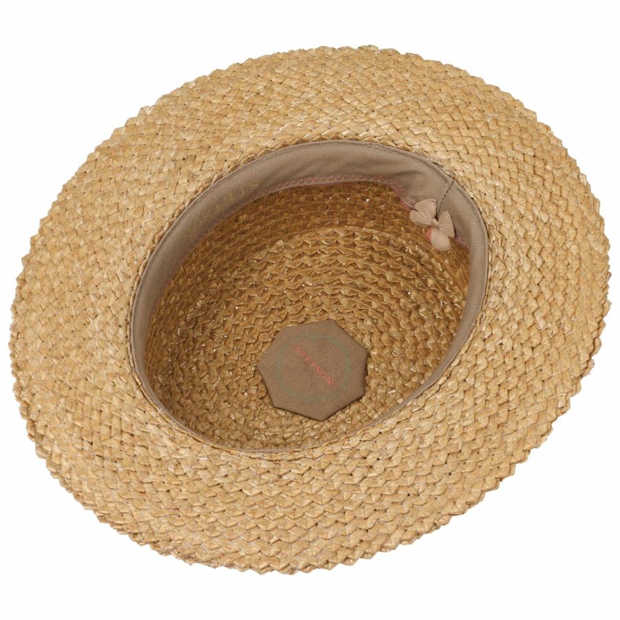 Stetson chose wheat straw for this classic, which has been carefully handwoven into braids that then make up the expressive and unique design of this hat. The rarely used wheat straw weaving tradition makes the summer hat with wide, contrast-coloured grosgrain ribbon trim that ends in a decorative bow into a dimensionally stable collectors item.