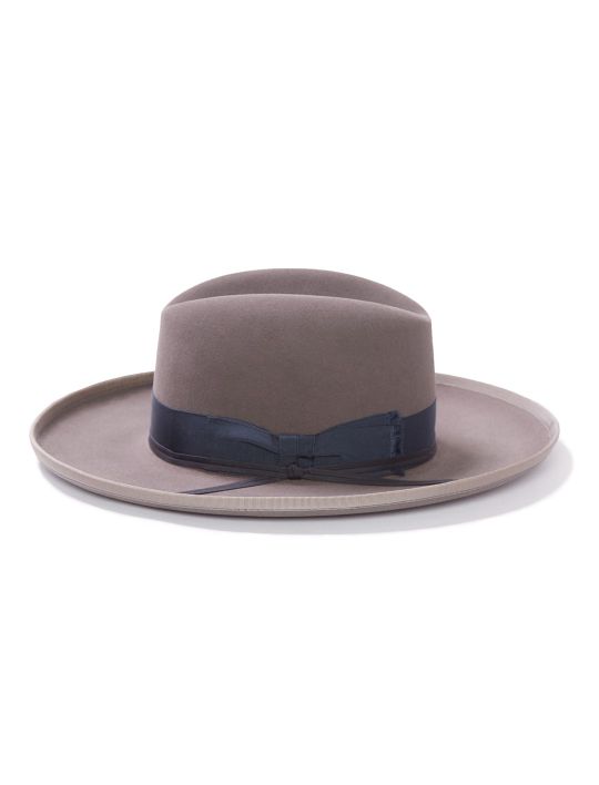 The West Bound B Fedora Is constructed of firm, fur felt and features a constrasting bound edge and kettle curl brim. Center dent crown is finished with a double hat band. Interior features a roan sweatband. Firm Fur Felt, Made in U.S.A.